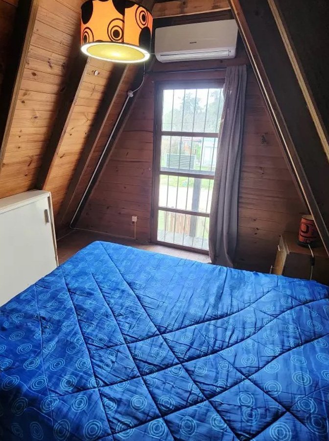 Esta cabaña es perfecta para familias que buscan comodidad y cercanía a la playa en un entorno tranquilo y seguro. Con 2 dormitorios en planta alta (cama matrimonial y 3 camas individuales), aire acondicionado, ventiladores, Smart TV de 43′ con WiFi, cocina totalmente equipada, parrillero techado y un terreno cercado con portón seguro, es perfecta para familias y mascotas.
