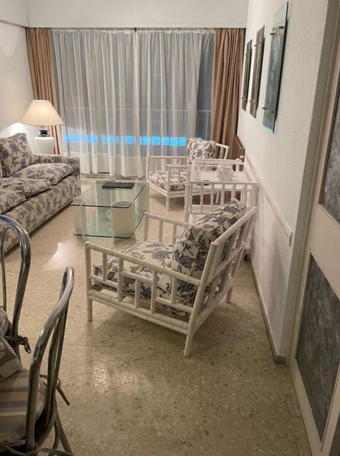 El amplio living es el corazón del apartamento, ofreciendo un ambiente relajado y acogedor. Los cómodos sillones, el televisor con TV cable y el WiFi aseguran el entretenimiento en todo momento, mientras que la mesa redonda crea el escenario perfecto para compartir largas y agradables conversaciones. Además, un gran ventanal orientado hacia el frente permite la entrada de aire fresco y ofrece una hermosa vista a las playas, llenando el espacio de luz natural.