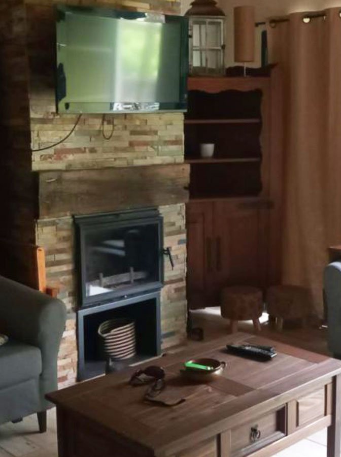 - Climatización: Aire acondicionado, estufa a leña y calefacción.