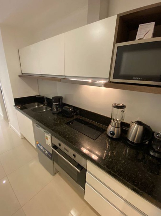 El monoambiente cuenta con una cocina totalmente equipada con heladera, horno, microondas, cafetera, tostadora, licuadora y jarra eléctrica, ideal para preparar tus propias comidas. También dispone de aire acondicionado, cofre de seguridad, TV con cable, WiFi y teléfono, asegurando conectividad y entretenimiento en todo momento.