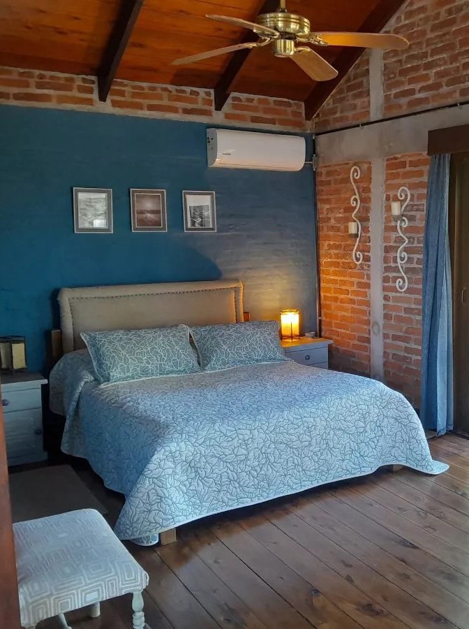 Ubicada a pasos de la playa, se accede mediante un mirador y un puente colgante único en Maldonado. La casa se encuentra rodeada por una reserva ecológica con una rica diversidad de aves, ofreciendo un entorno de tranquilidad y contacto con la naturaleza.