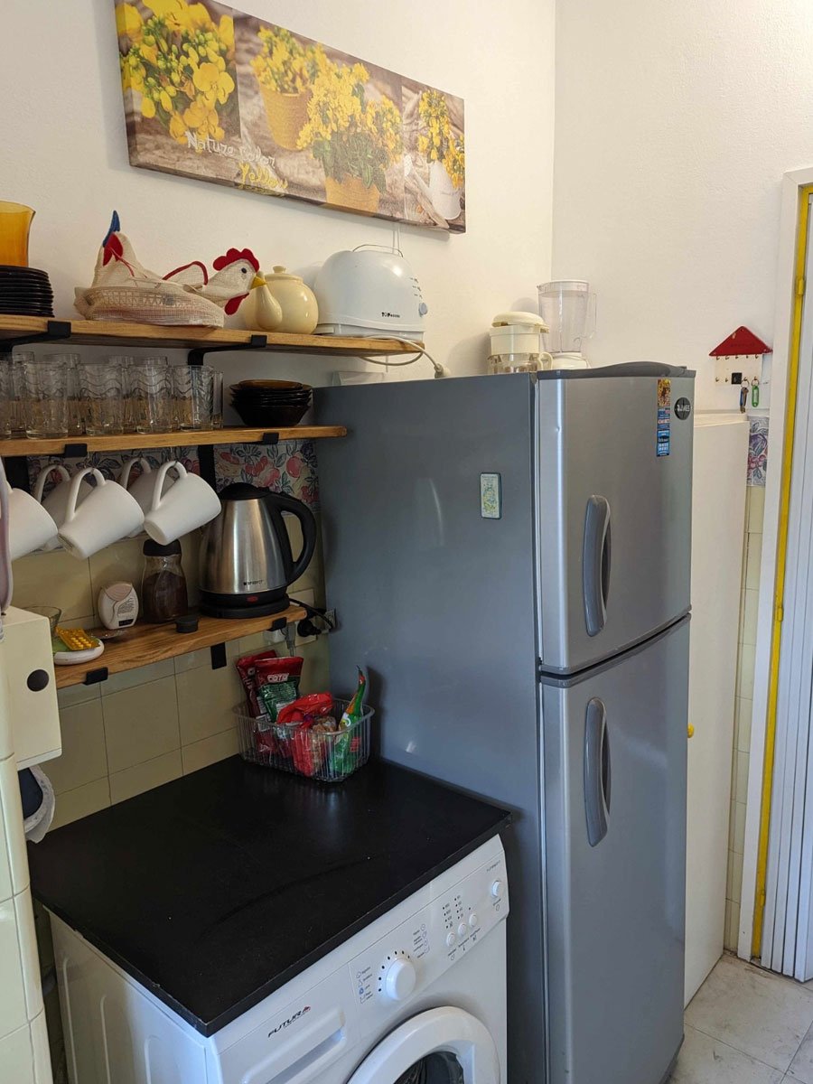 - Cocina totalmente equipada con microondas, heladera con freezer y lavarropas, ideal para largas estadías.